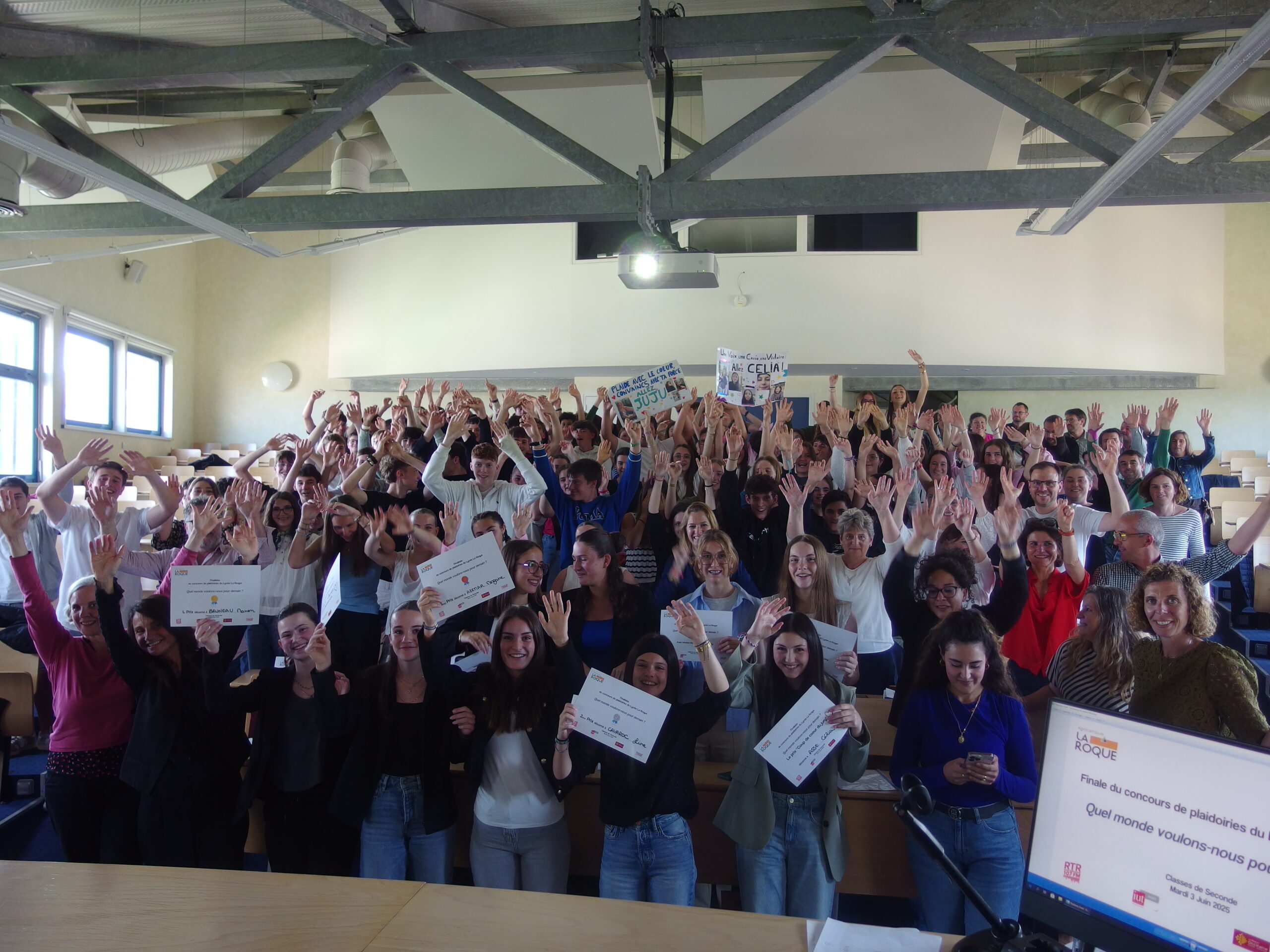 Qui a dit que la jeunesse n’était plus engagée ? Au lycée La Roque, personne ne le dira plus après la deuxième édition du concours de plaidoirie, certainement pas le jury ! Le mardi 3 juin, 3 heures intenses dans l’amphithéâtre de l’IUT de Rodez ont permis aux élèves d’aiguiser les consciences des plus jeunes … mais aussi des adultes et de répondre à la question : Quel monde voulons-nous pour demain ?