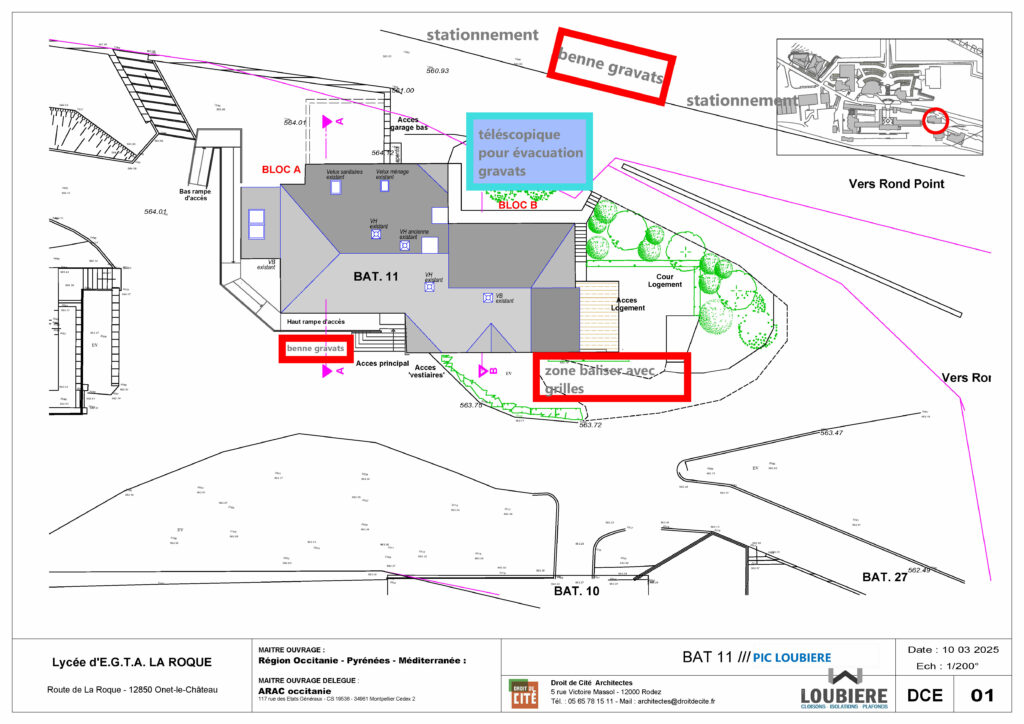 Merci de rouler au pas et d’être vigilant lors de vos passages devant les zones (évacuations de gravats, sorties de bennes).