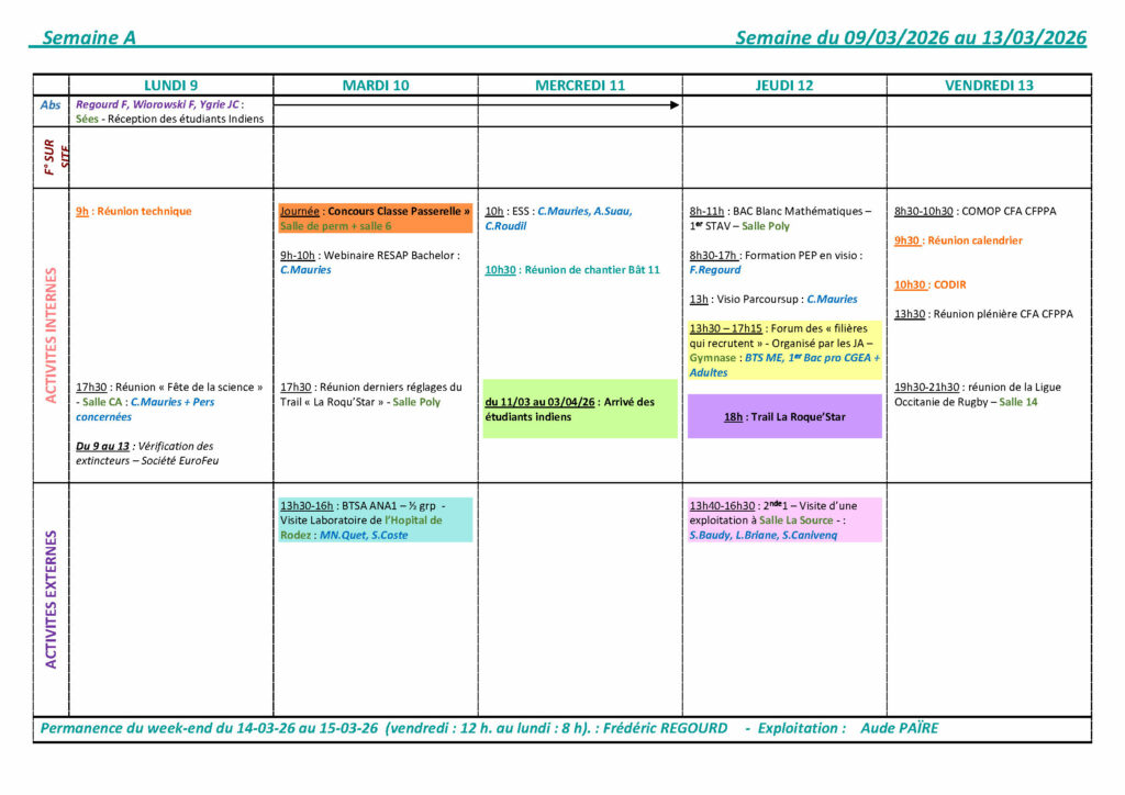 Semaine du 19/01 au 23/01 2026